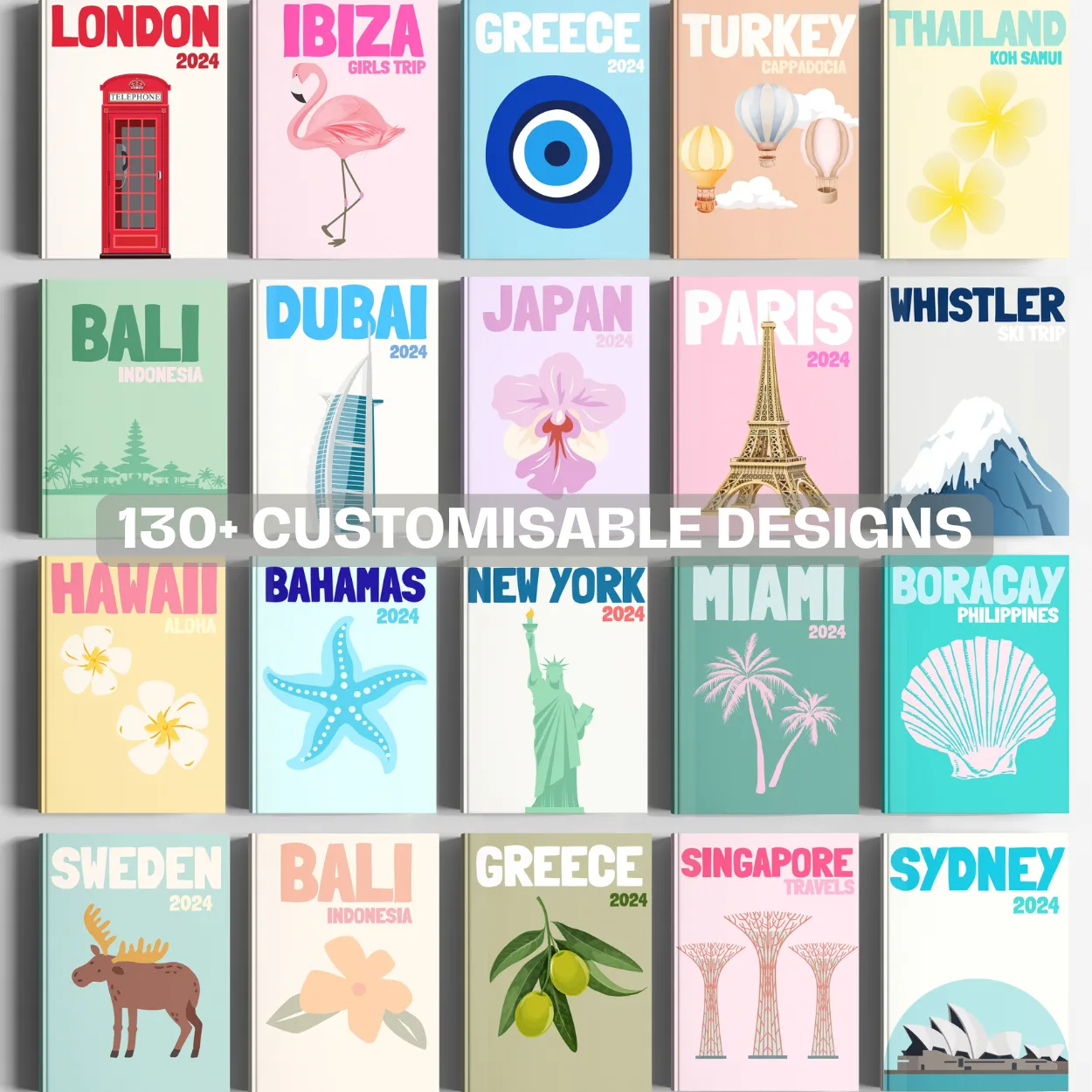 Scegli il tuo modello o parti da zero e progetta il tuo diario di viaggio personalizzato in meno di 10 minuti! Tutti i modelli sono completamente personalizzabili nell'editor.